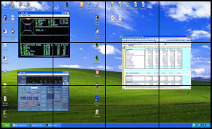 The VisionRGB-PRO can be operated with any standard graphics adapter and is supplied with Windows® XP-Pro/Windows® 2000 drivers. For applications requiring improved update rates and lower system overhead then we recommend using the Vantage4 or iH4 range of graphics adapters. The Vision RGB software, when used with the Datapath graphics cards, implements direct DMA to the graphics texture memory. The captured RGB is then rendered to the display using hardware texture mapping to greatly improve performance. This implementation dramatically improves update rates when the image is up-scaled as would be required with video wall and data wall applications.
