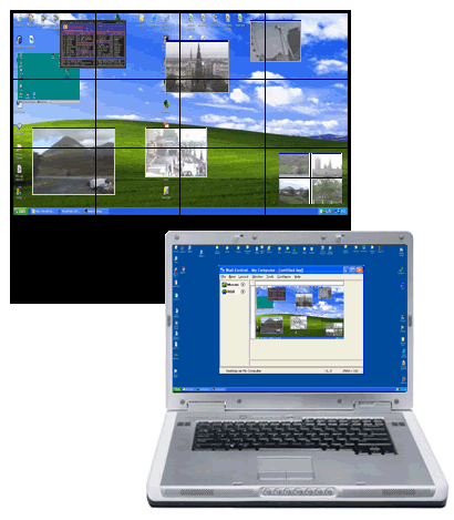 Wall Control visualizza l'intero layout del video wall nella finestra dell'applicazione sul computer connesso in rete. La posizione e la dimensione di ciascuna finestra presente sul video wall viene rappresentata all'interno della schermata dell'applicazione. L'utente può intervenire inmodo interattivo muovendo e ridimensionando le finestre delle applicazioni aperte sul video wall. L'interfaccia utente può essere visualizzata tramite un PC commesso in rete, oltre che sullo stesso video wall o su uno schermo non utilizzato per il video wall ma sempre connesso al sistema di controllo del video wall. gli operatori che intervengono sul layout possono essere molteplici anche in simultanea, in modo da poter avere più punti di controllo.