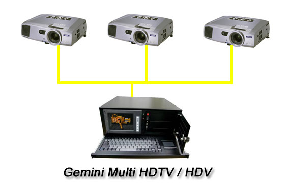 E' possibile installare nello stesso sistema due schede Gemini 2 HDTV / HDV per avere 4 uscite sincronizzate SD oppure HD. |