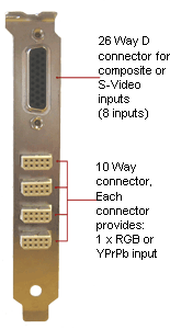 - 1 x 26 Way D per 8 segnali in composito or 8 ingressi S-Video. Fornita con cavo splittato con connettori BNC16.